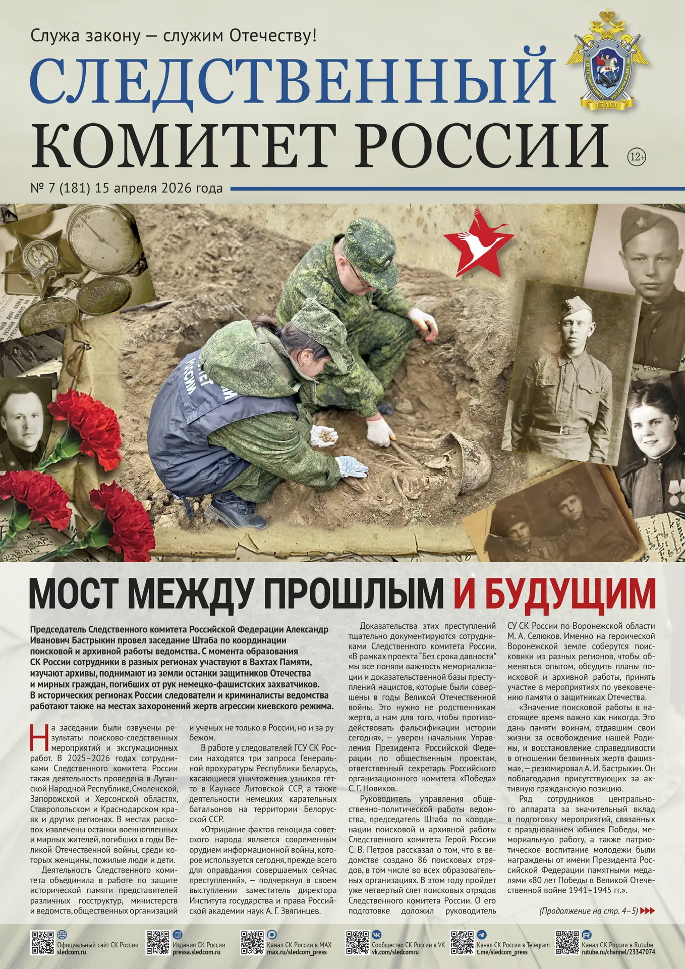 На официальном сайте СУ СК России по Смоленской области в разделе «Издания Следственного комитета России» размещен очередной выпуск газеты «Следственный комитет России» от 15.04.3026 № 7 (181).