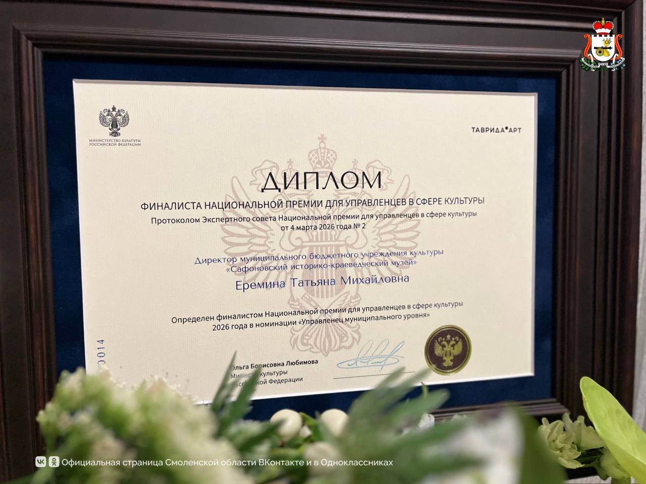 В Москве в День работника культуры подвели итоги первой «Национальной премии для управленцев в сфере культуры». В числе финалистов оказались представители Смоленской области.