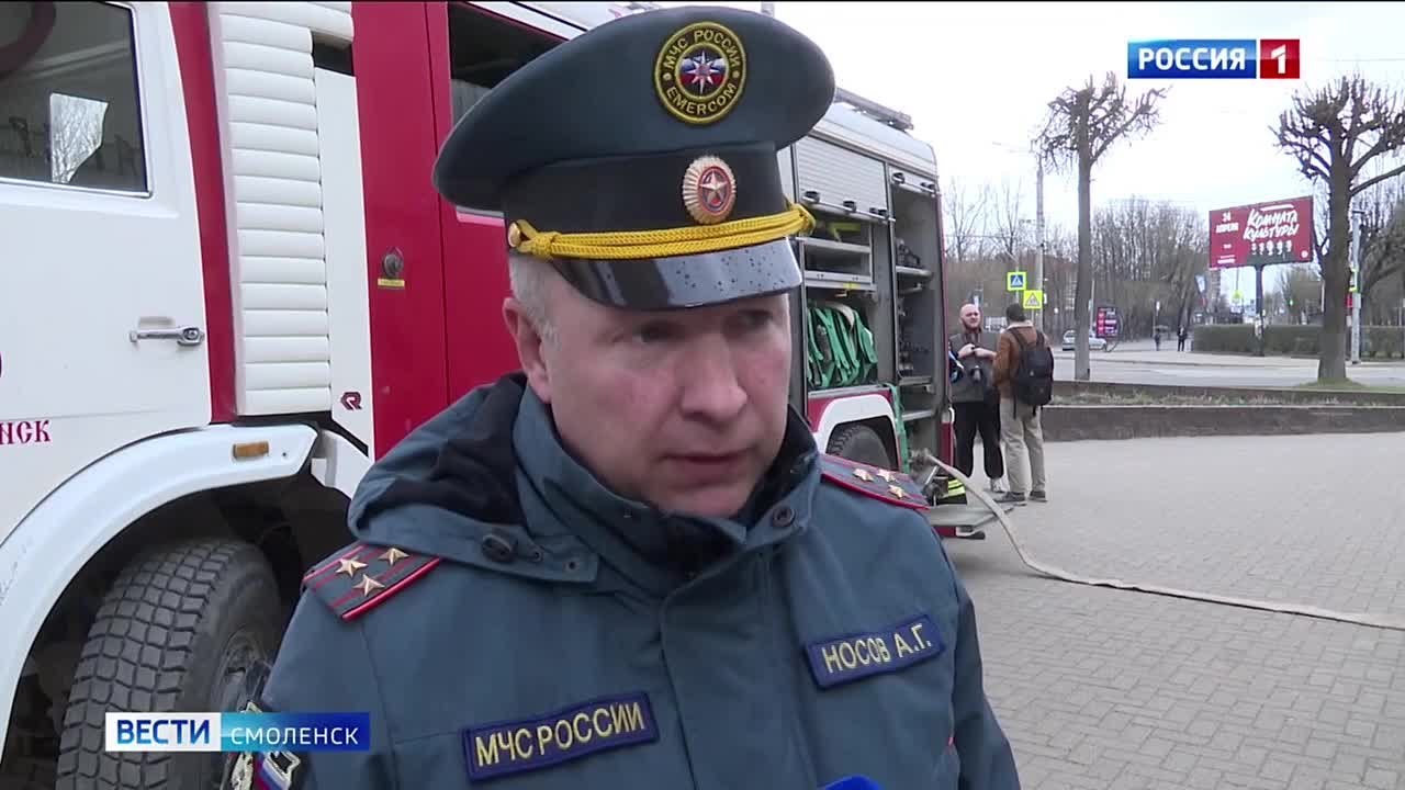 Смоленские пожарные потушили условный пожар в Камерном театре. Там прошли пожарно-тактические учения.