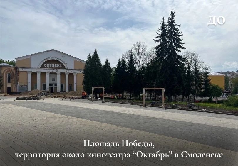 Так, на площади Победы в Смоленске выполнили благоустройство сквера перед кинотеатром "Октябрь".