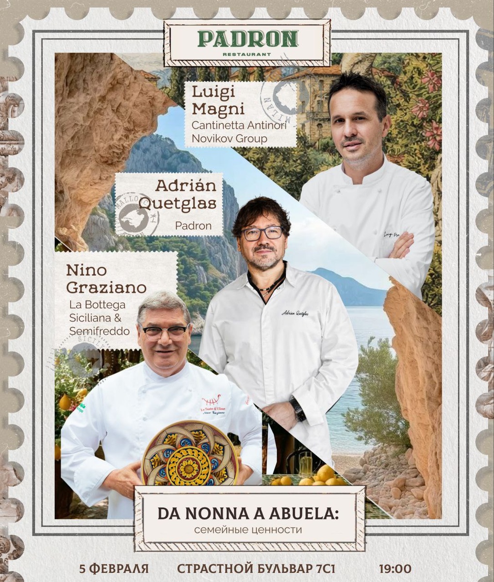 5 февраля в ресторане Padron пройдет уникальный ужин, который станет настоящим событием для любителей итало-испанской кухни. Концепт-шеф заведения, Адриан Кетглас, совместно с известными шеф-поварами Нино Грациано и Луиджи Маньи, готовятся удивить гостей не только яркими блюдами, но и атмосферой, пронизанной семейными ценностями.