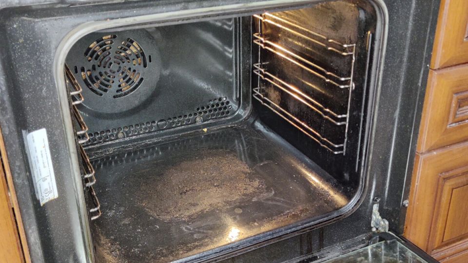 Первым делом необходимо освободить духовку от всех противней и решеток. Не забудьте также извлечь боковые решетки. Затем с помощью металлического скребка или прочной пластиковый карты аккуратно удалите крупные загрязнения. Подготовьте рабочую зону: застелите пол газетами или тряпками, чтобы облегчить уборку. Чтобы избежать дискомфорта для коленей, рекомендуется подстелить под них мягкое полотенце.
