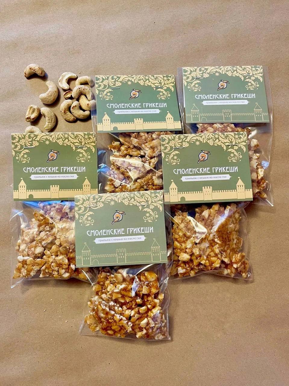 Название "грикеши" — это сочетание слов "грильяж" и "кешью", которое отражает суть продукта. Семейная пара начинала с производства сыродавленных масел из разных сельскохозяйственных культур и решила создать на их основе новый вид сладкого продукта. В его составе – карамелизованный орех, который благодаря топленому маслу гхи приобретает особую структуру и вкус. Дизайн упаковки был разработан при поддержке центра "Мой бизнес".
