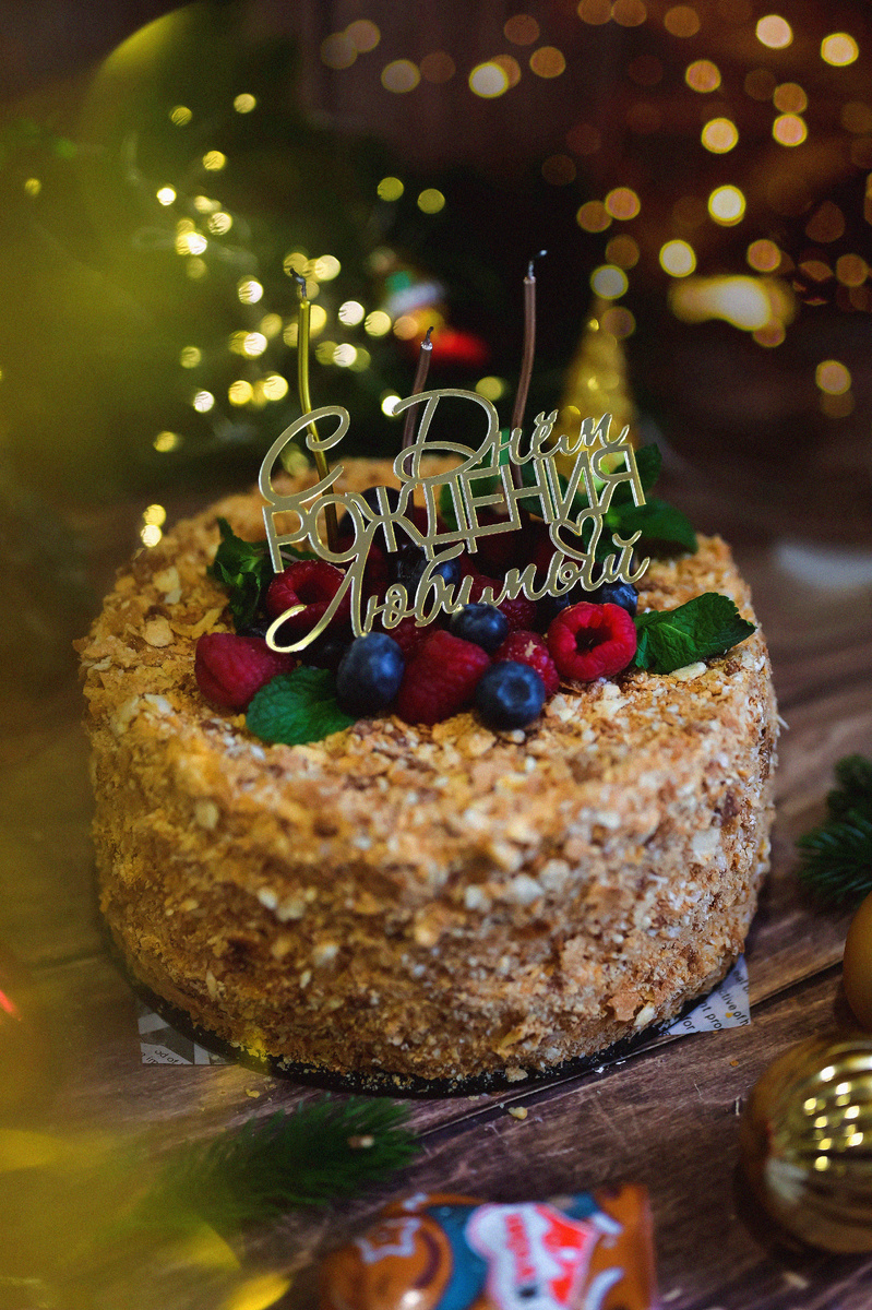 Затем легко соедините слоеные коржи с кремом, аккуратно оберните торт ацетатной пленкой и дайте ему настояться в холодильнике несколько часов. Украсить торт можно на ваше усмотрение, добавив фрукты или шоколад.