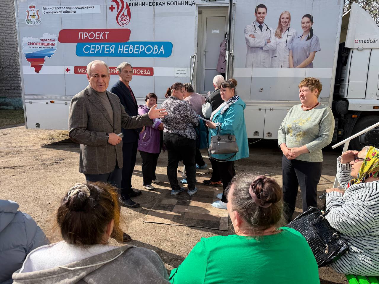 Депутат дал старт своему проекту «Автопоезд «Здоровье Смоленщины», который вот уже 10 лет ездит по отдалённым сёлам региона. В рамках проекта жители могут пройти приём узких специалистов из областного центра — кардиолога, невролога, офтальмолога, ЛОРа, эндокринолога, онколога, гинеколога, а также получить УЗИ-диагностику и другие исследования.